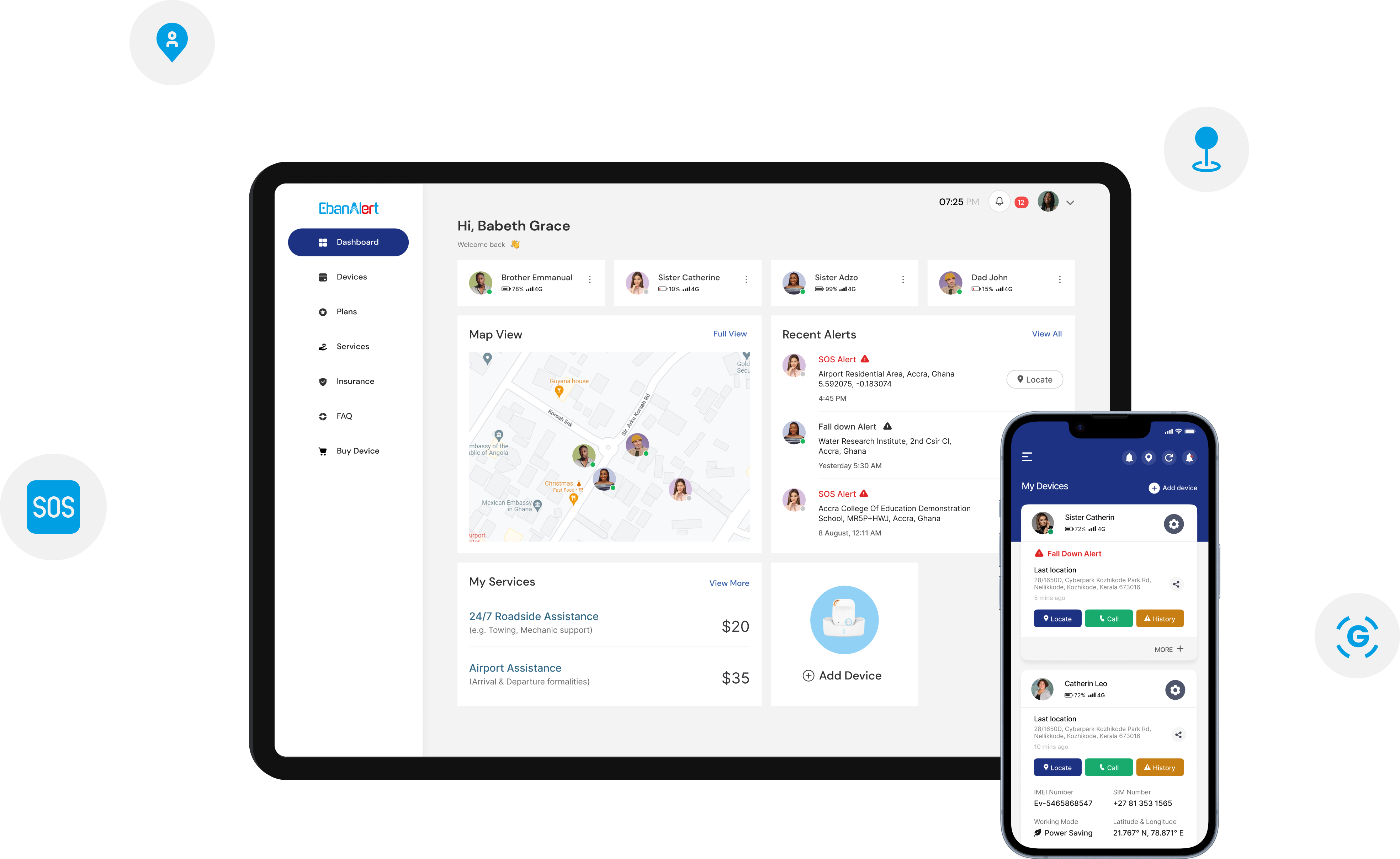Setup your secured account and add user devices. Set notification preference and incident alerts to emergency contacts and next of kins.